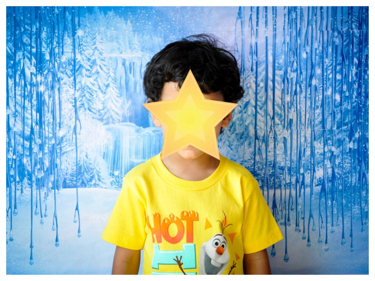 So since we had a few decorations already made for the birthday already, I decided to let her have a little fun at home with her Frozen stuff. So I asked my bestie’s husband (who is a great photographer!) to take some pictures of them with the photo booth at home.