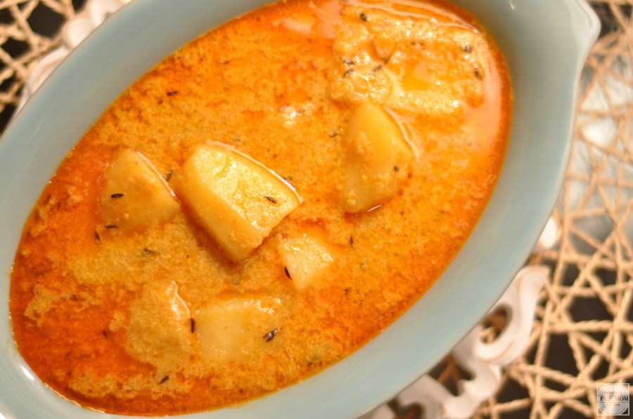 - Put around 1.5 cups water and let it cook on low heat (covered), till the potatoes are done and the gravy is the right consistency.