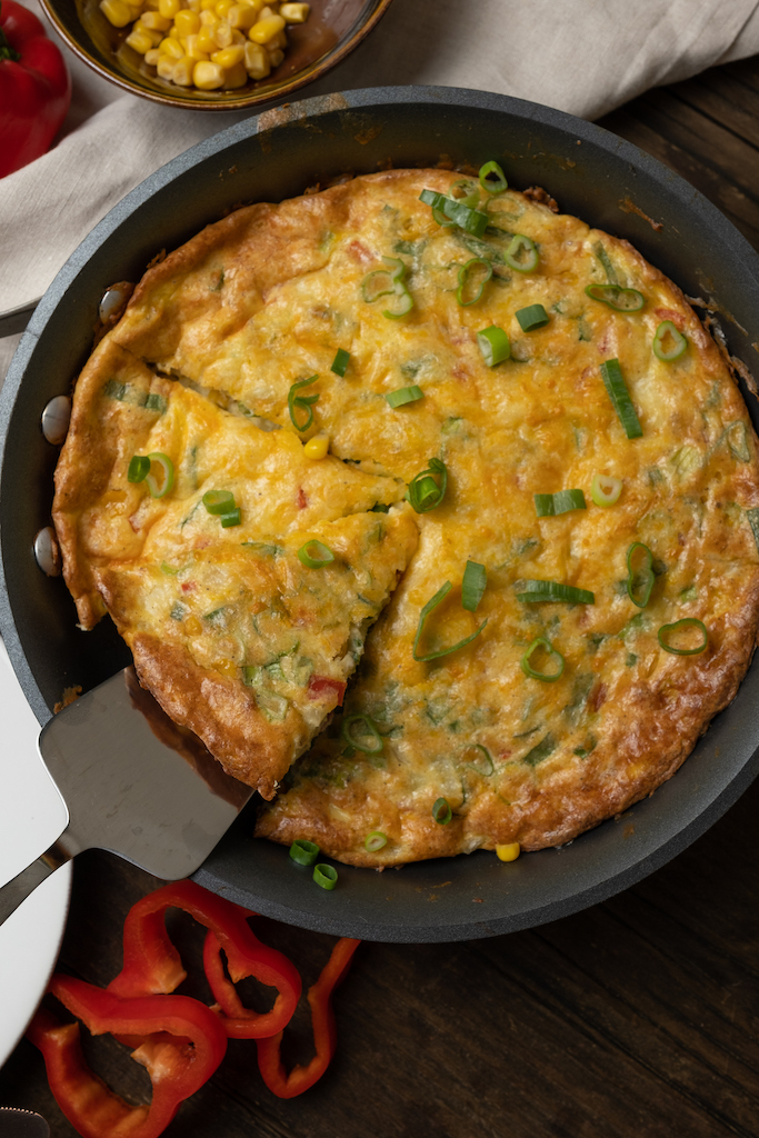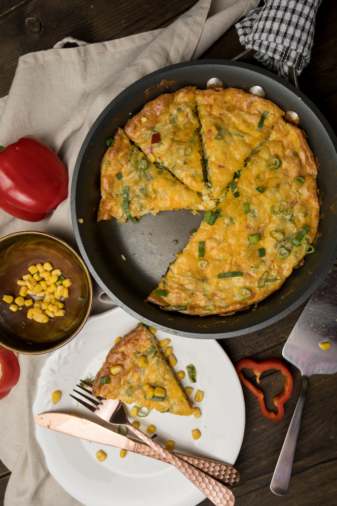 Frittata is an egg-based dish similar to an omelette or basically a crustless quiche. The best part is that you can make so many variations by using different combinations of veggies and meats in it. This recipe is by my friend Naveen and while she was in Doha, I never asked her for her recipe cause she spoilt us by making it for us whenever we craved it, but since she moved I had to ask her for recipe and make it myself.